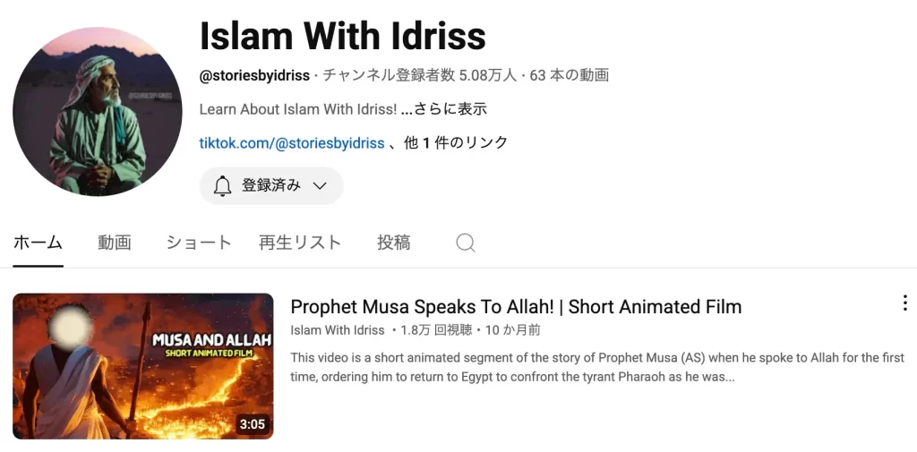 このチャンネルはクルアーンに出てくる多くの預言者の生涯のライフストーリーをAIを使ったアニメで表しています。